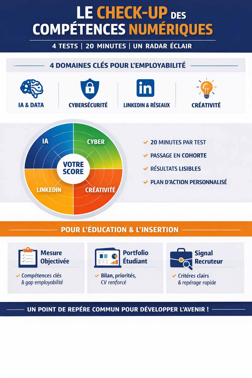 L’enjeu, c’est de créer un point de repère commun: un check-up simple, partagé, qui transforme un discours (“future skills”) en trajectoire (“voilà où tu es, voilà comment tu progresses”).